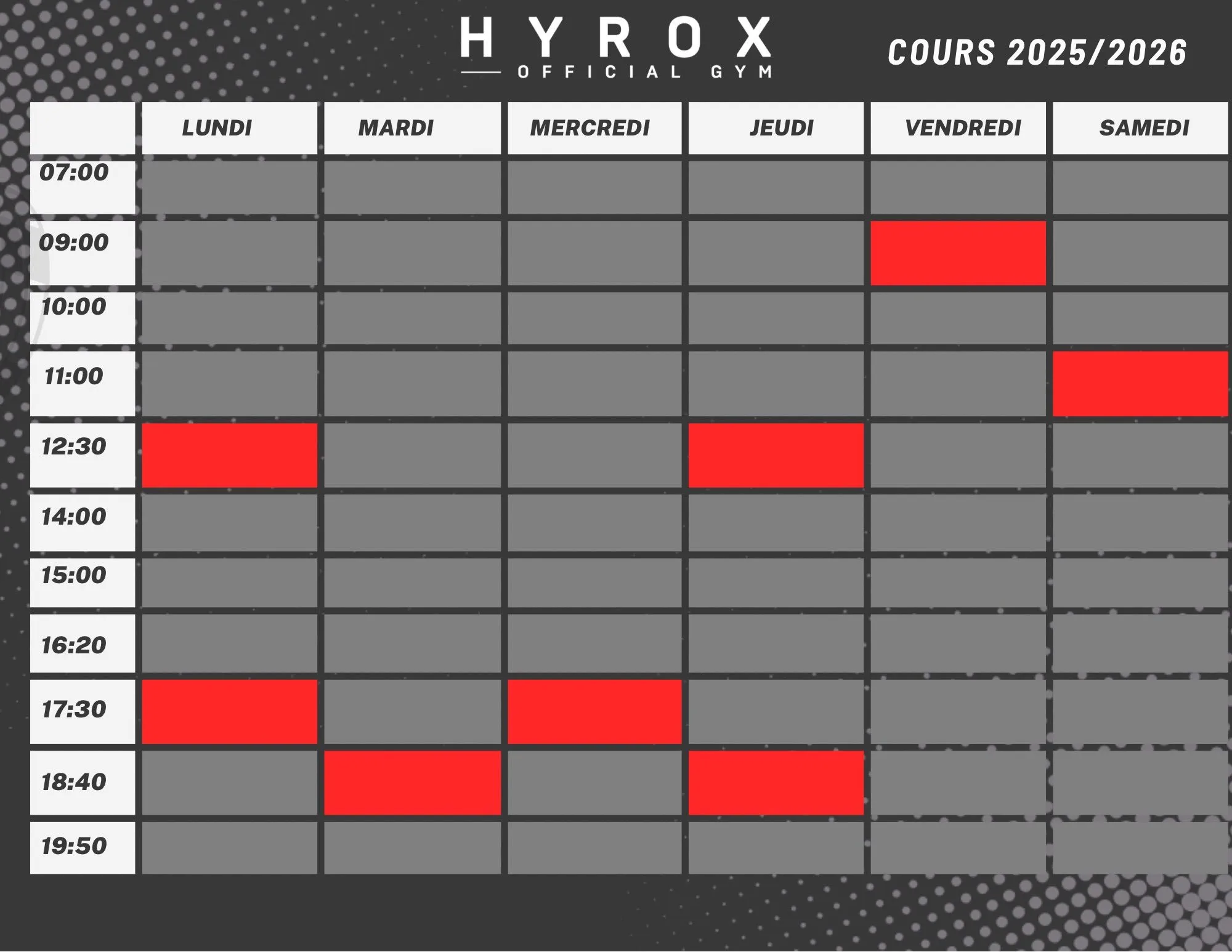 Planning HYROX – Cours 2025-2026